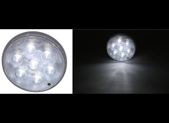 4" ROUND LED CLEAR / WHITE TRAILER LIGHT, 7 DIODE, CLEAR LENS, OVERALL 4-1/4" ROUND